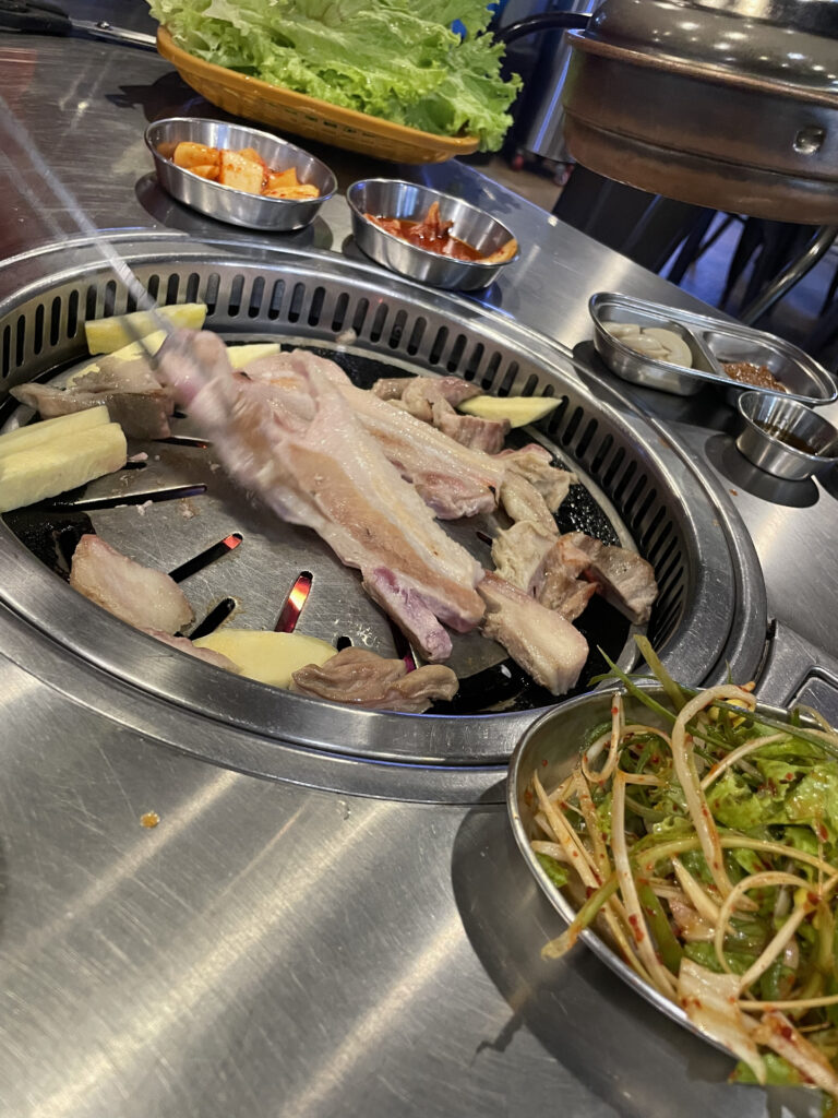 定番のマクチャン(豚ホルモン)とサムギョプサルとビールにしました。